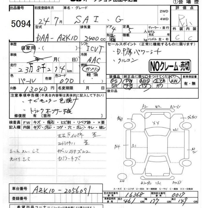 TOYOTA SAI G - лот 5094