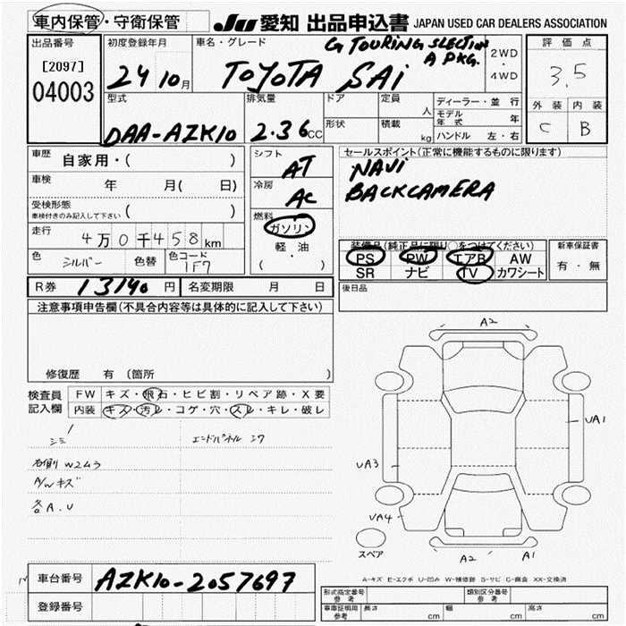 TOYOTA SAI G TOURING SELECTION A-PKG - лот 4003