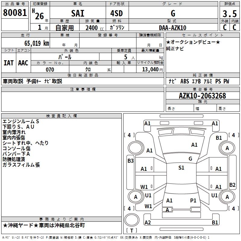 TOYOTA SAI G - лот 80081
