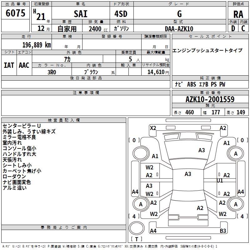 TOYOTA SAI G - лот 6075