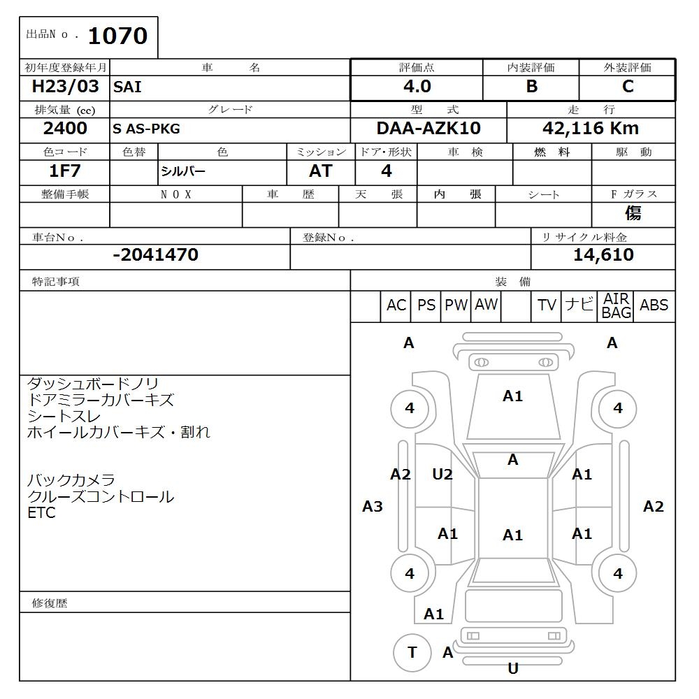 TOYOTA SAI S AS-PKG - лот 1070