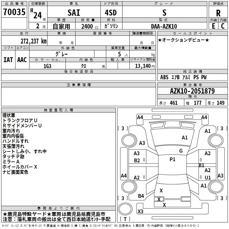 TOYOTA SAI S - лот 70035