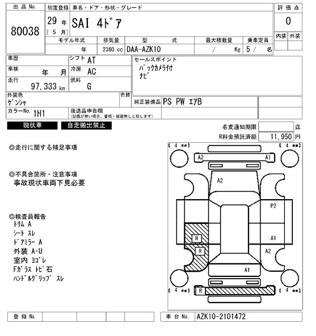 TOYOTA SAI - лот 80038