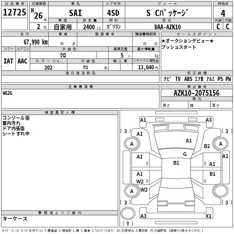 TOYOTA SAI S C PACKAGE - лот 12725