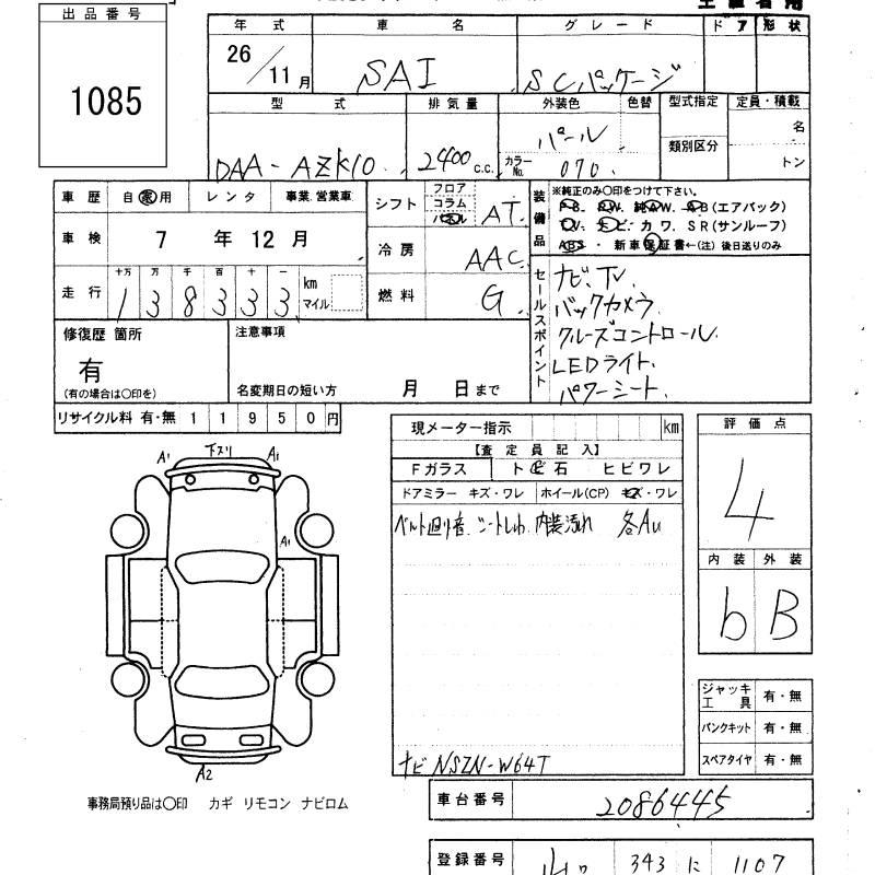TOYOTA SAI S C PACKAGE - лот 1085