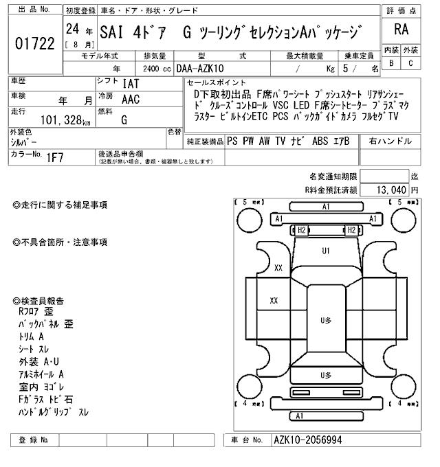 TOYOTA SAI G TOURING SELECTION A PACKAGE - лот 1722