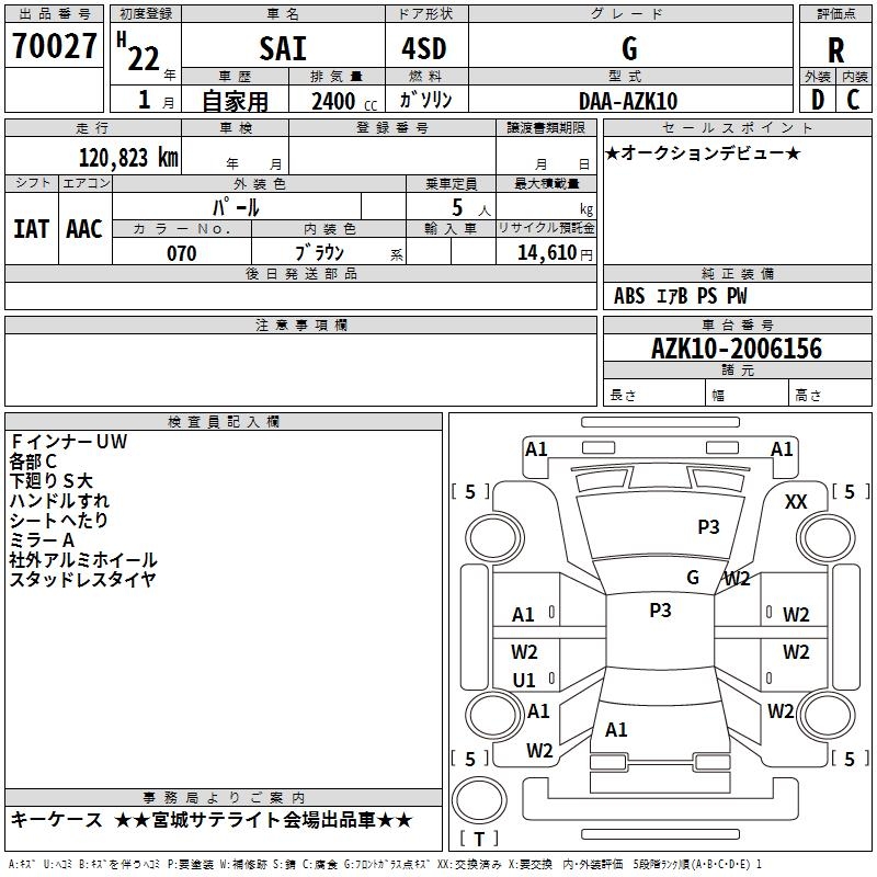TOYOTA SAI G - лот 70027
