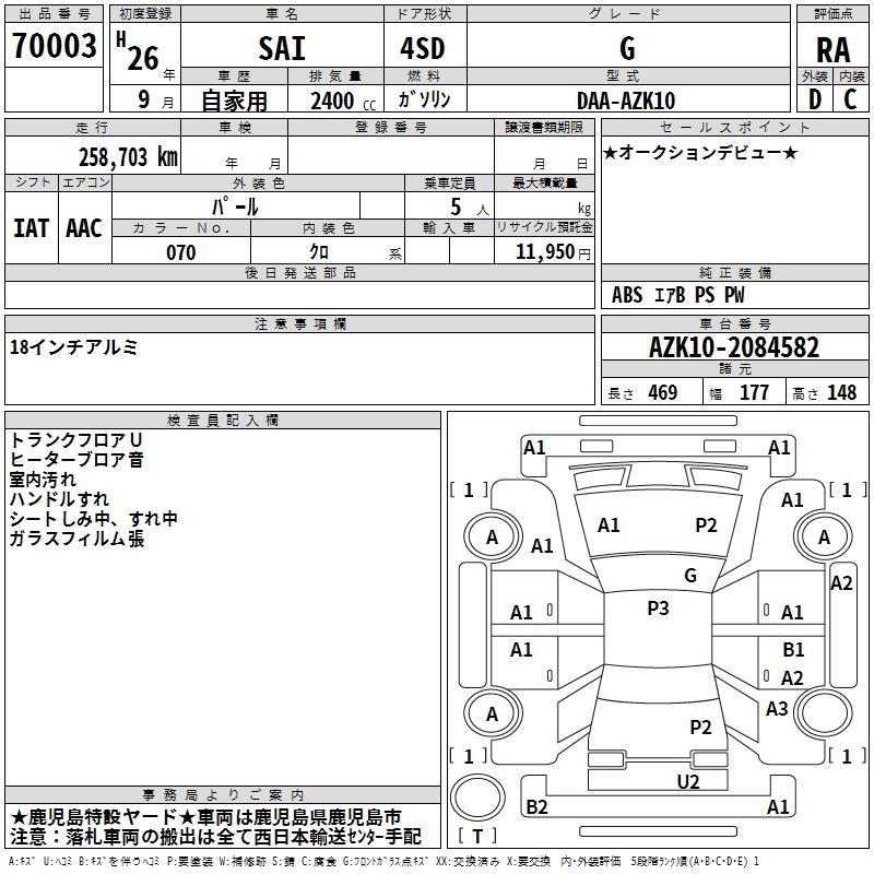 TOYOTA SAI G - лот 70003