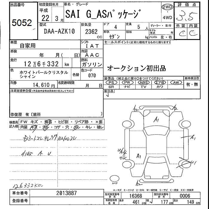 TOYOTA SAI G AS PACKAGE - лот 5052