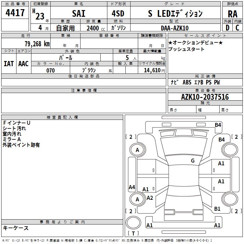 TOYOTA SAI S LED EDITION - лот 4417