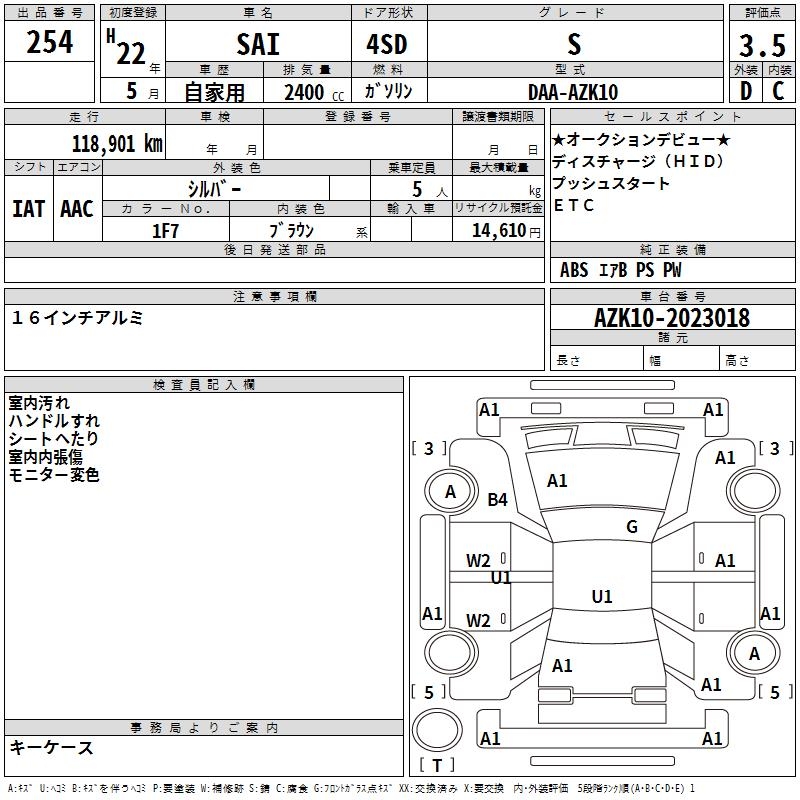 TOYOTA SAI S - лот 254