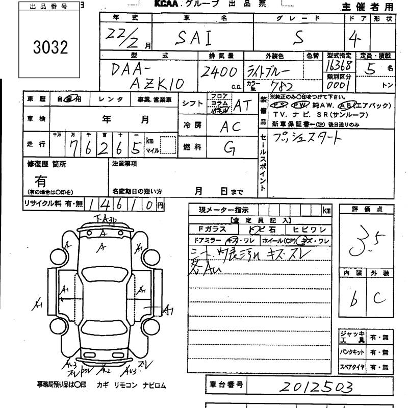 TOYOTA SAI S - лот 3032