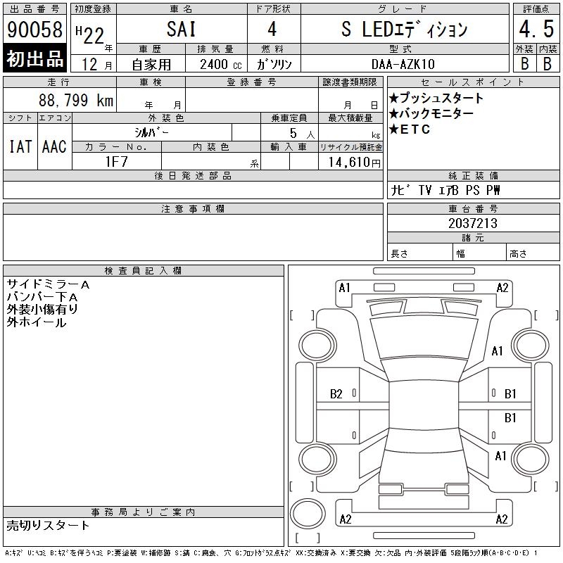 TOYOTA SAI S LED EDITION - лот 90058