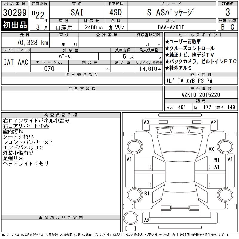 TOYOTA SAI S AS PACKAGE - лот 30299