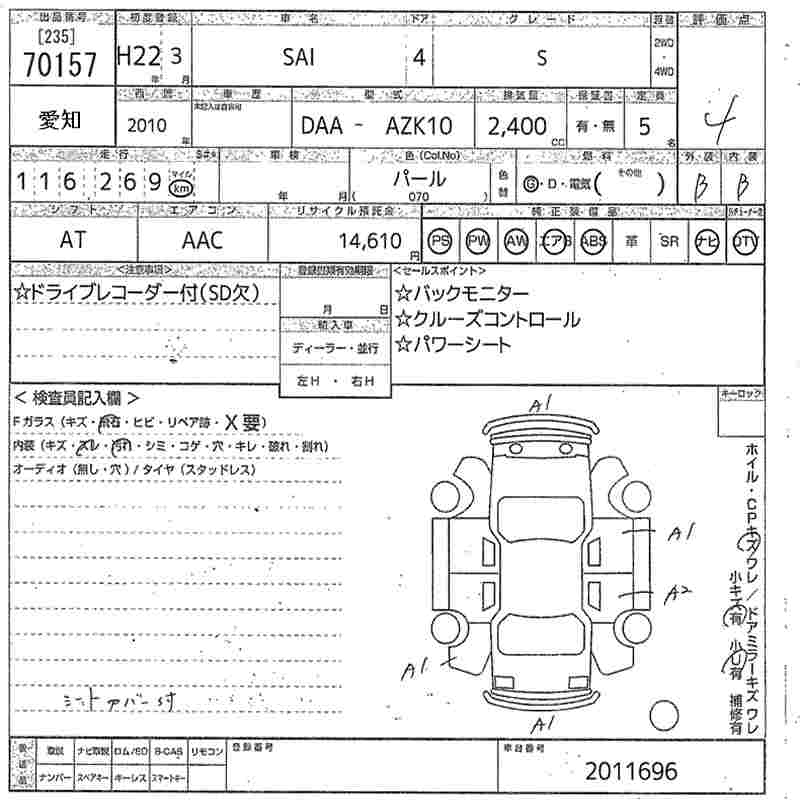 TOYOTA SAI S - лот 70157