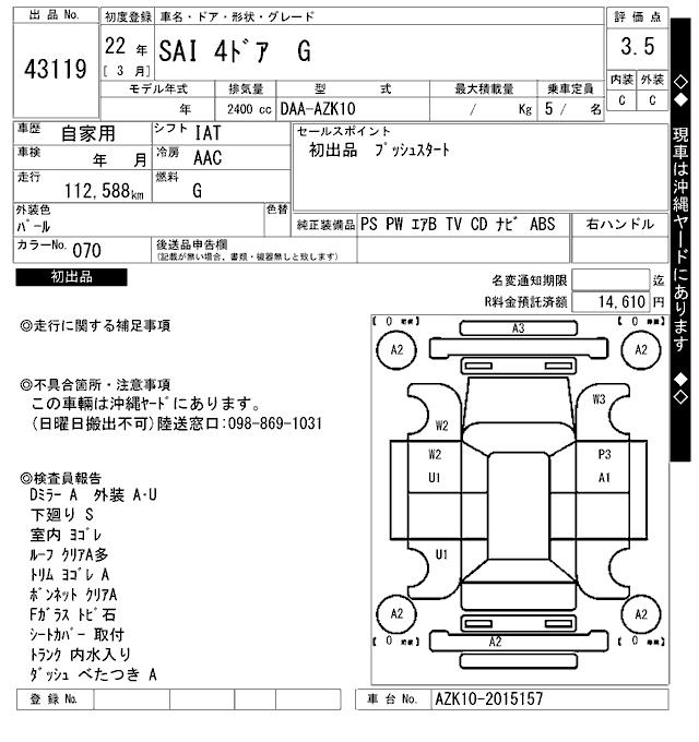 TOYOTA SAI G - лот 43119