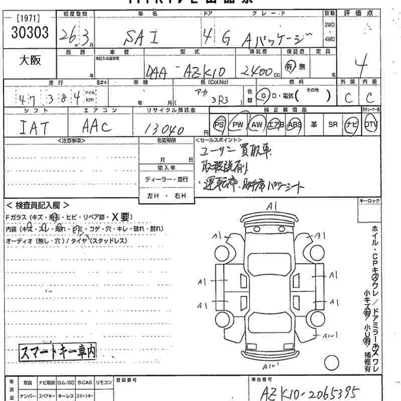 TOYOTA SAI G_A PACKAGE - лот 30303
