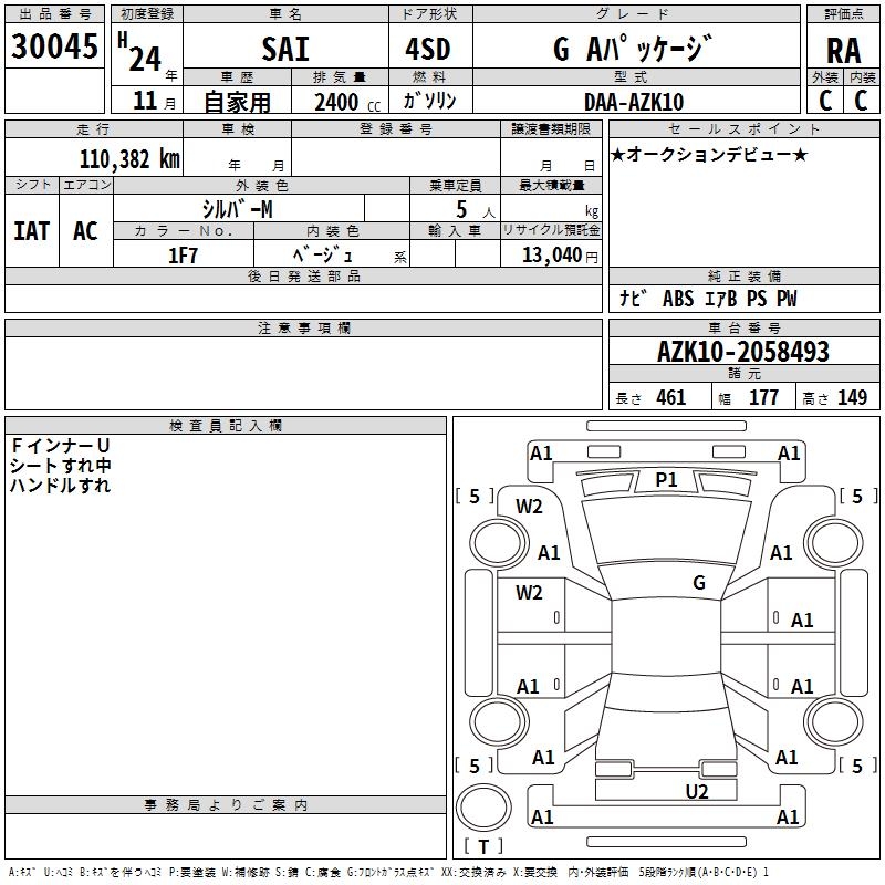 TOYOTA SAI G A PACKAGE - лот 30045