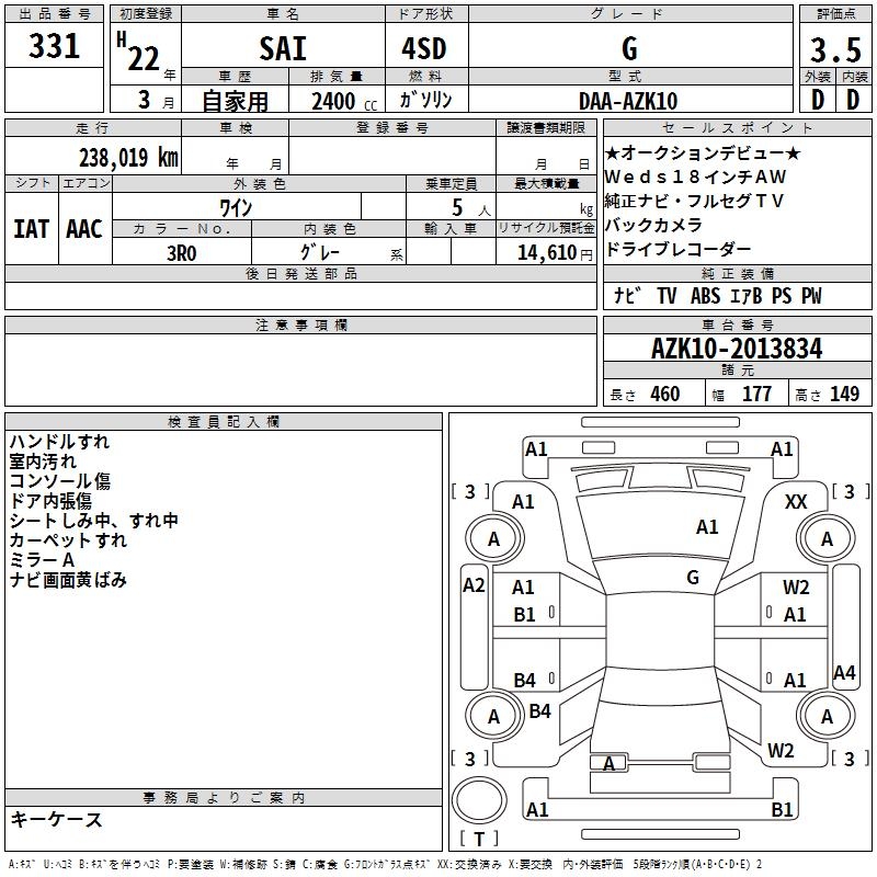 TOYOTA SAI G - лот 331