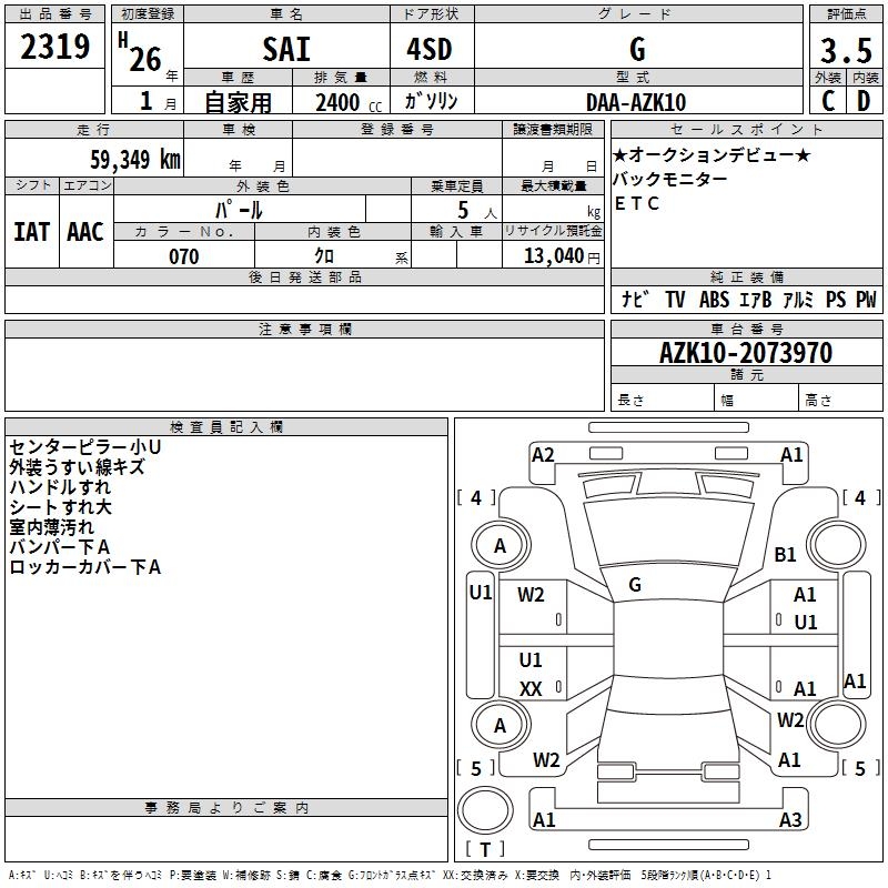 TOYOTA SAI G - лот 2319