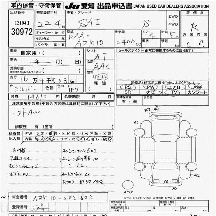TOYOTA SAI S - лот 30972