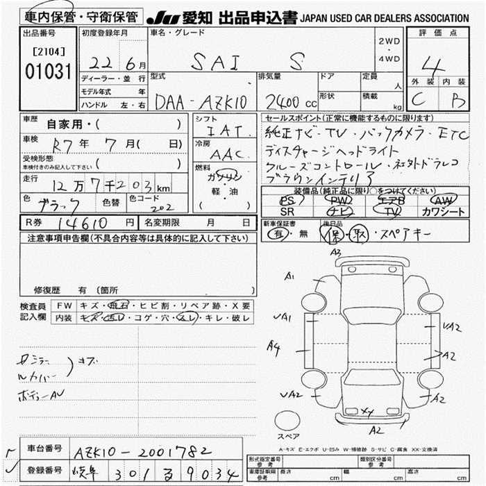 TOYOTA SAI S - лот 1031