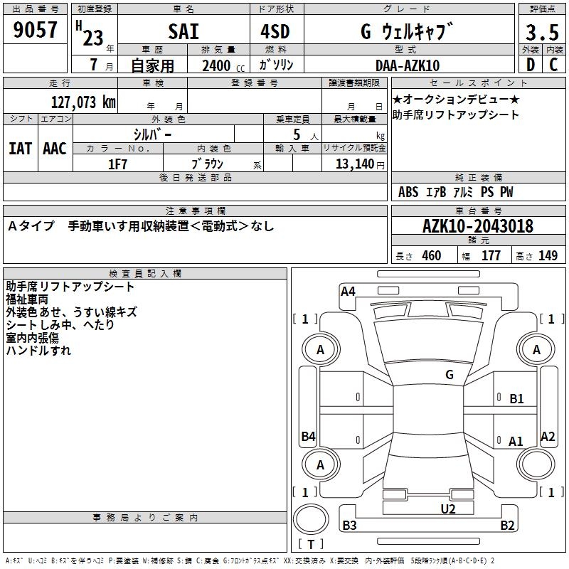 TOYOTA SAI G WELL CAB - лот 9057