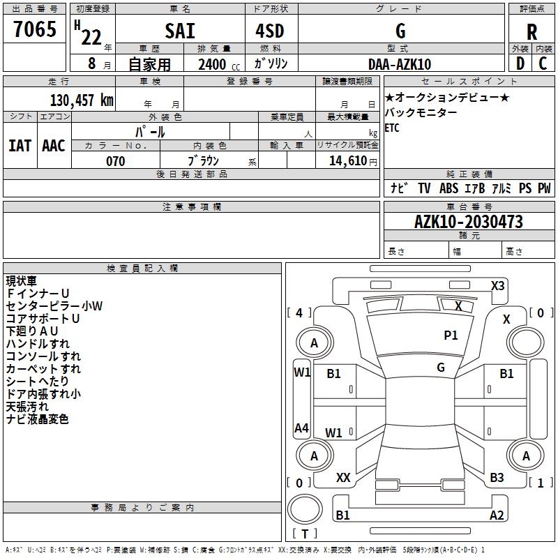 TOYOTA SAI G - лот 7065