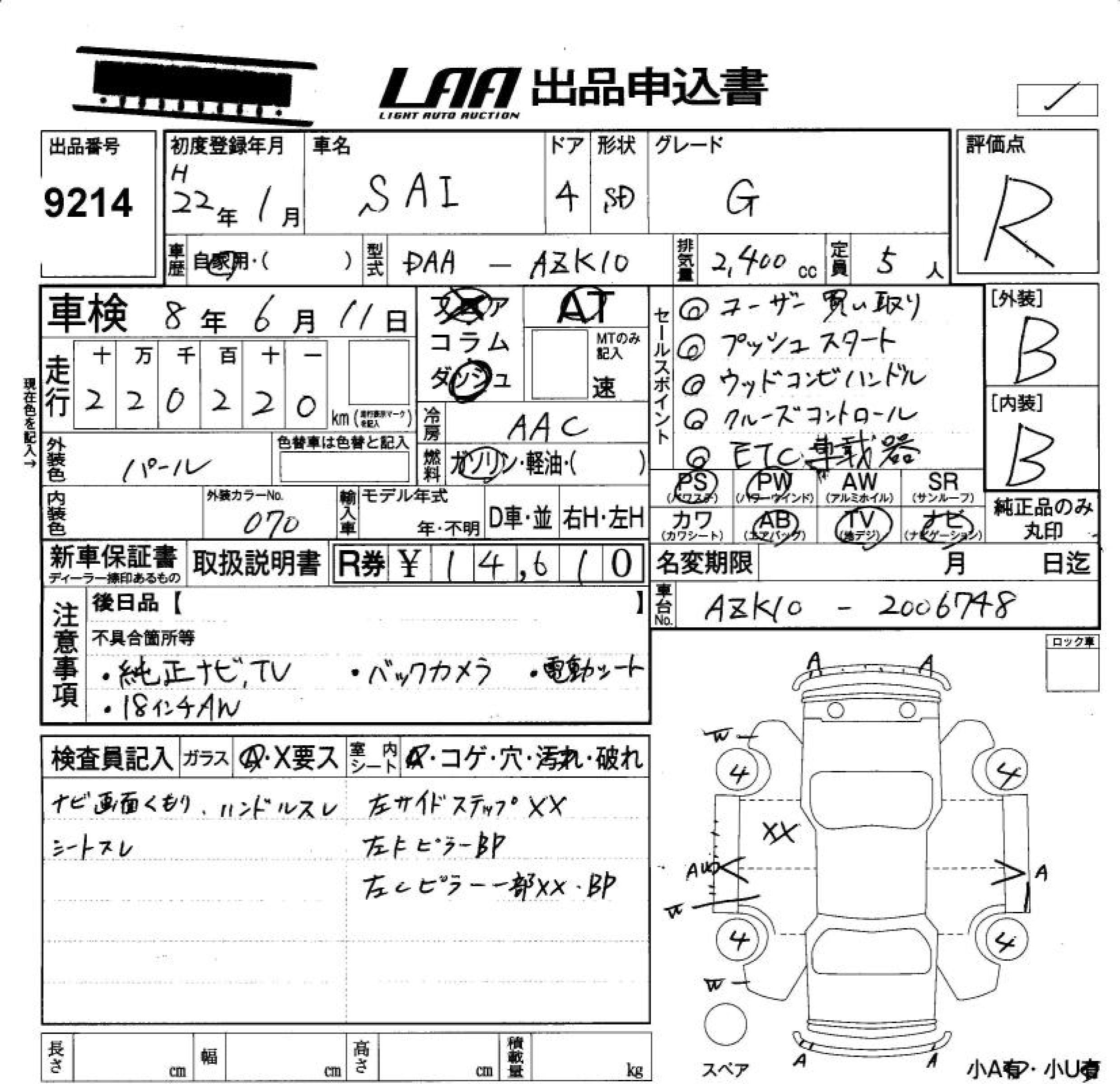 TOYOTA SAI G - лот 9214