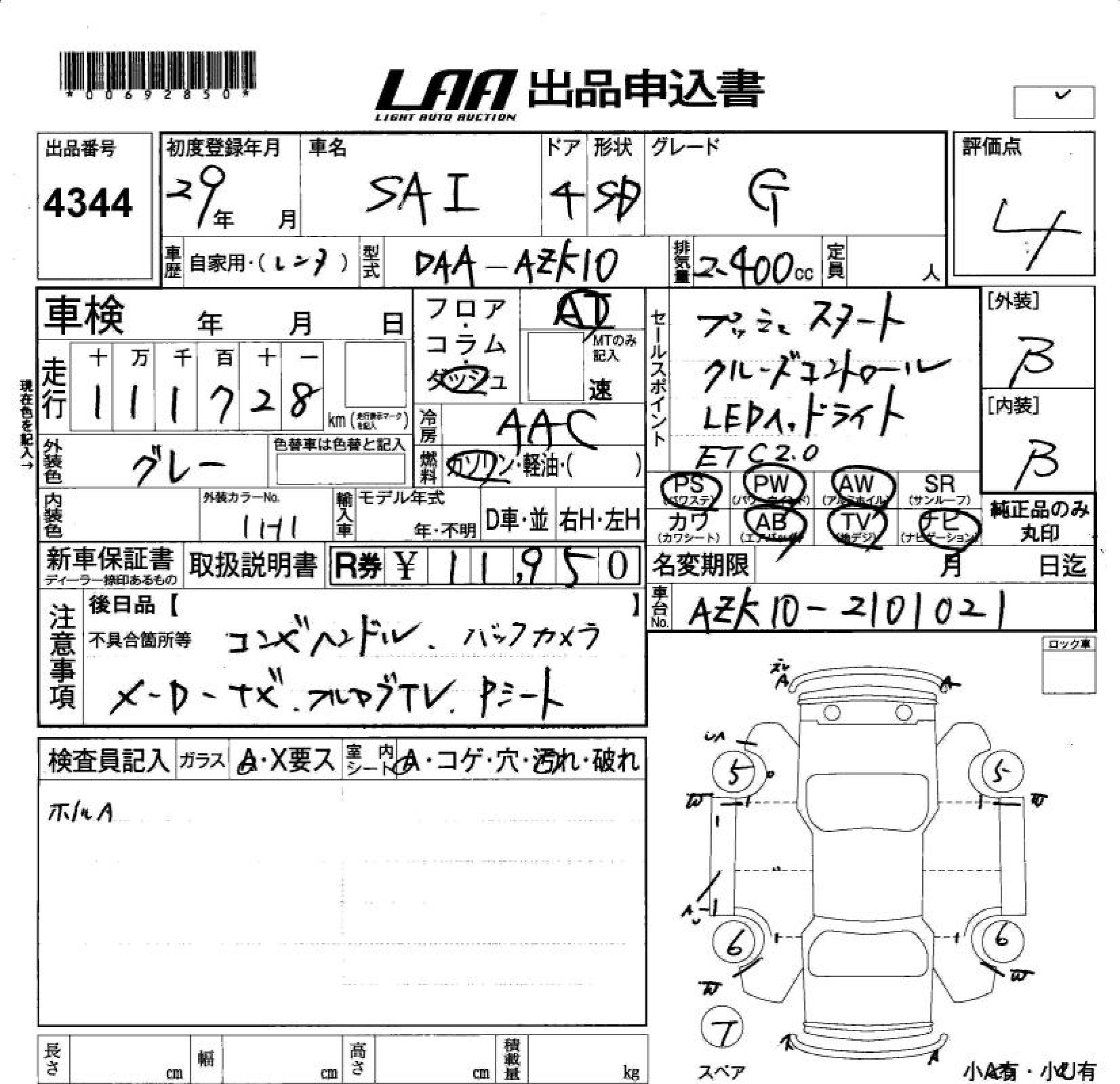 TOYOTA SAI G - лот 4344