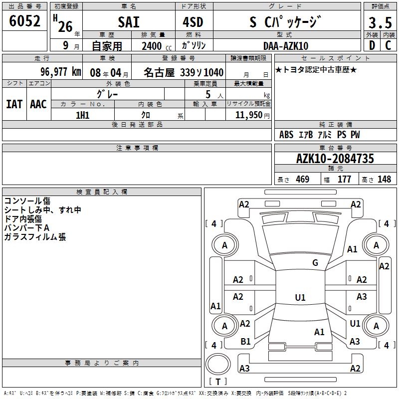 TOYOTA SAI S C PACKAGE - лот 6052