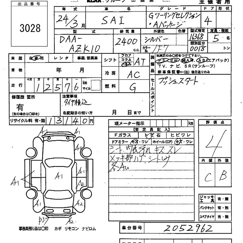 TOYOTA SAI G TOURING SELECTION *A PACK - лот 3028