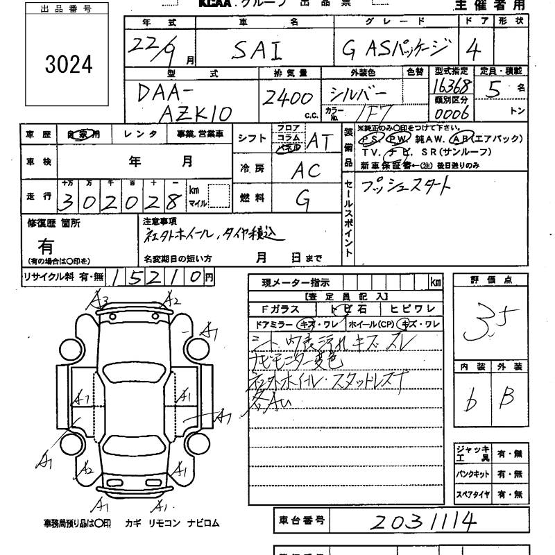 Все аукционы TOYOTA SAI