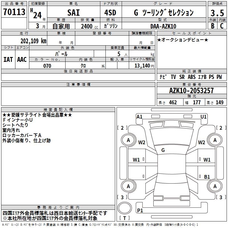 TOYOTA SAI G TOURING SELECTION - лот 70113