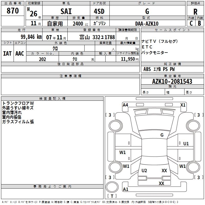 TOYOTA SAI G - лот 870
