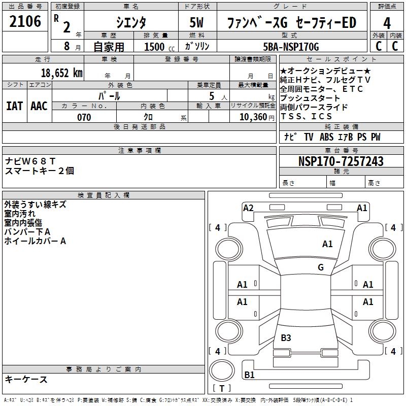TOYOTA SIENTA FAN BASE G SAFETY -ED - лот 2106