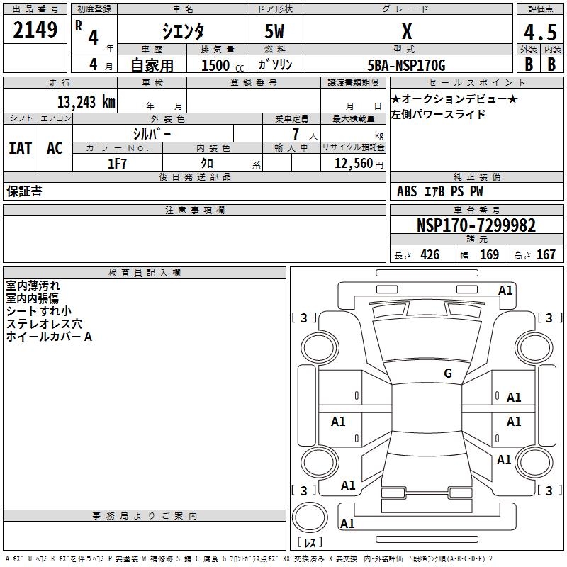 TOYOTA SIENTA X - лот 2149
