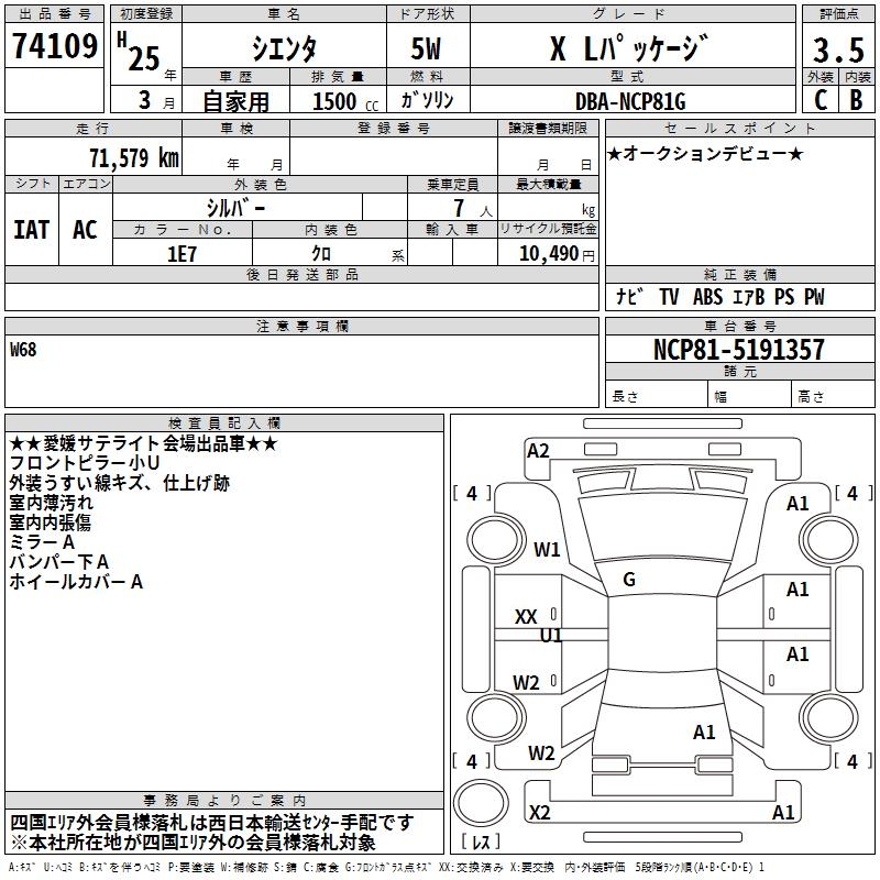 TOYOTA SIENTA X L PACKAGE - лот 74109