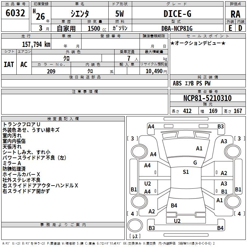 TOYOTA SIENTA DICE-G - лот 6032