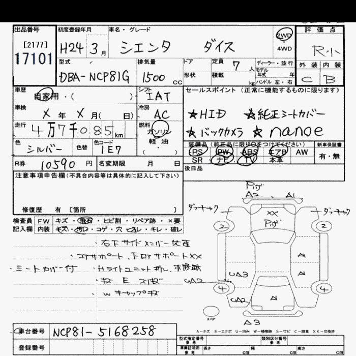 TOYOTA SIENTA DICE - лот 17101