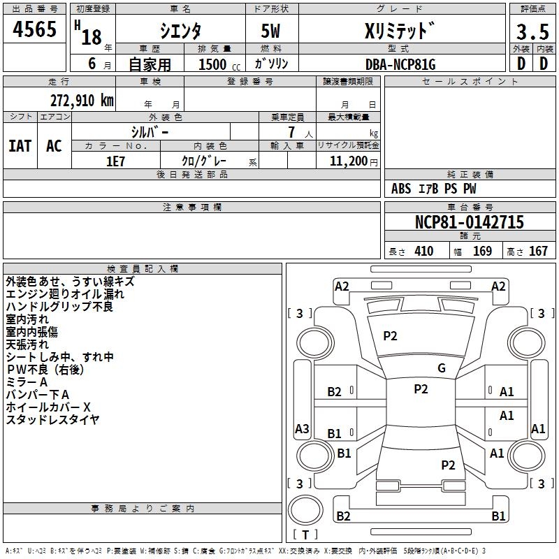 TOYOTA SIENTA X LIMITED - лот 4565