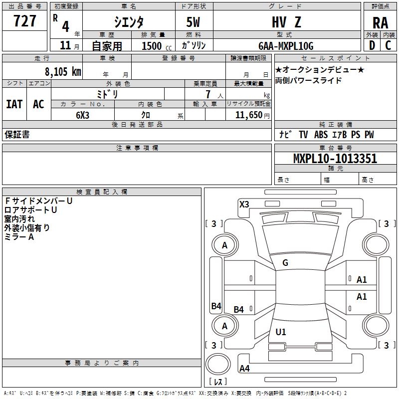 TOYOTA SIENTA HV Z - лот 727