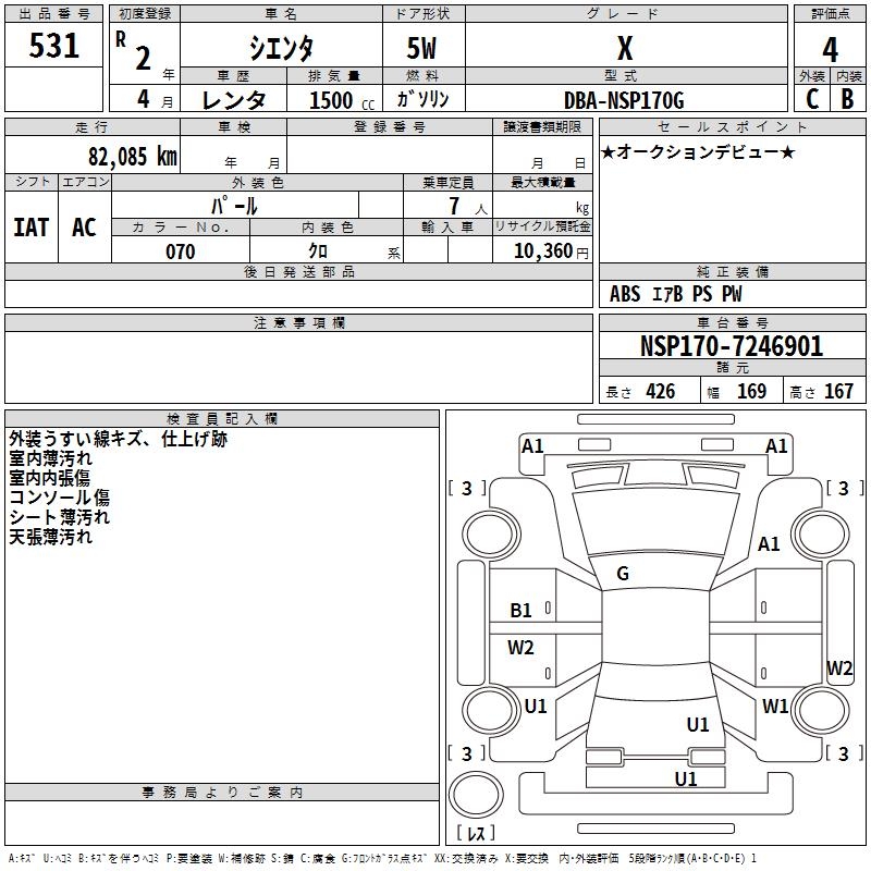 TOYOTA SIENTA X - лот 531