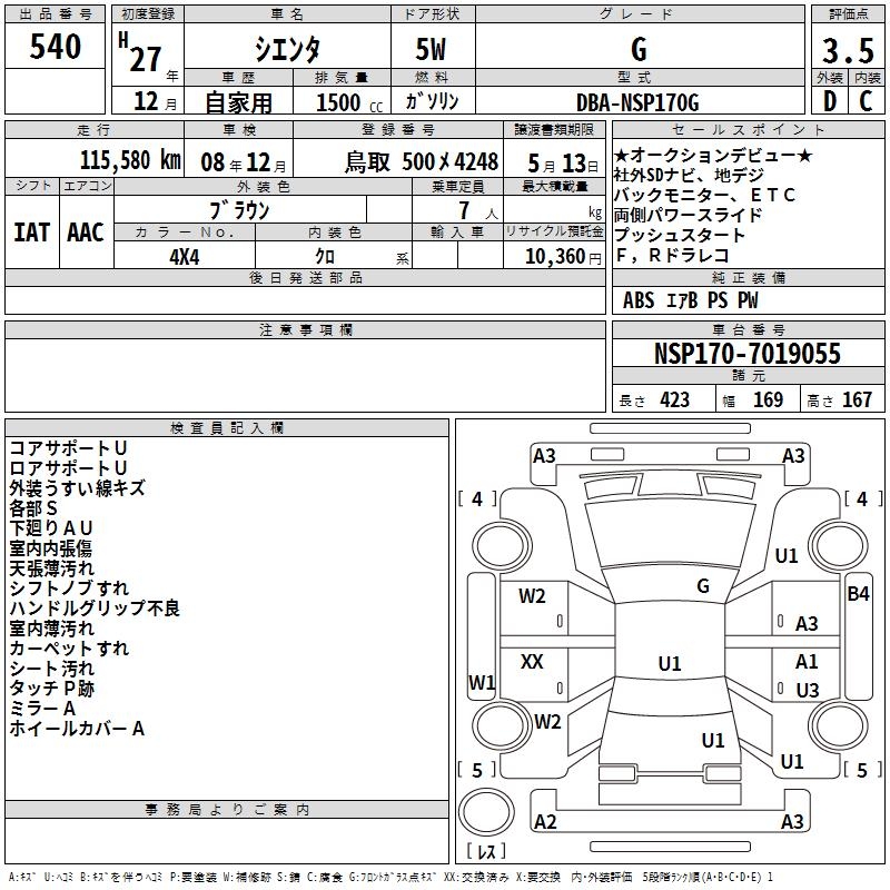 TOYOTA SIENTA G - лот 540