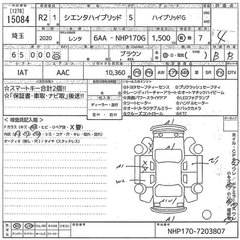TOYOTA SIENTA HYBRID G - лот 15084