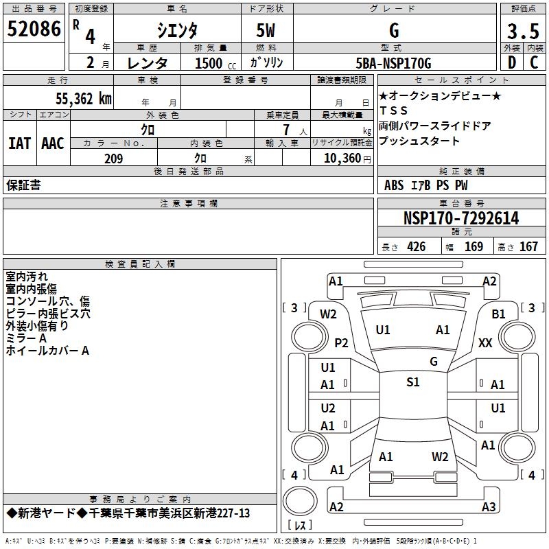 TOYOTA SIENTA G - лот 52086