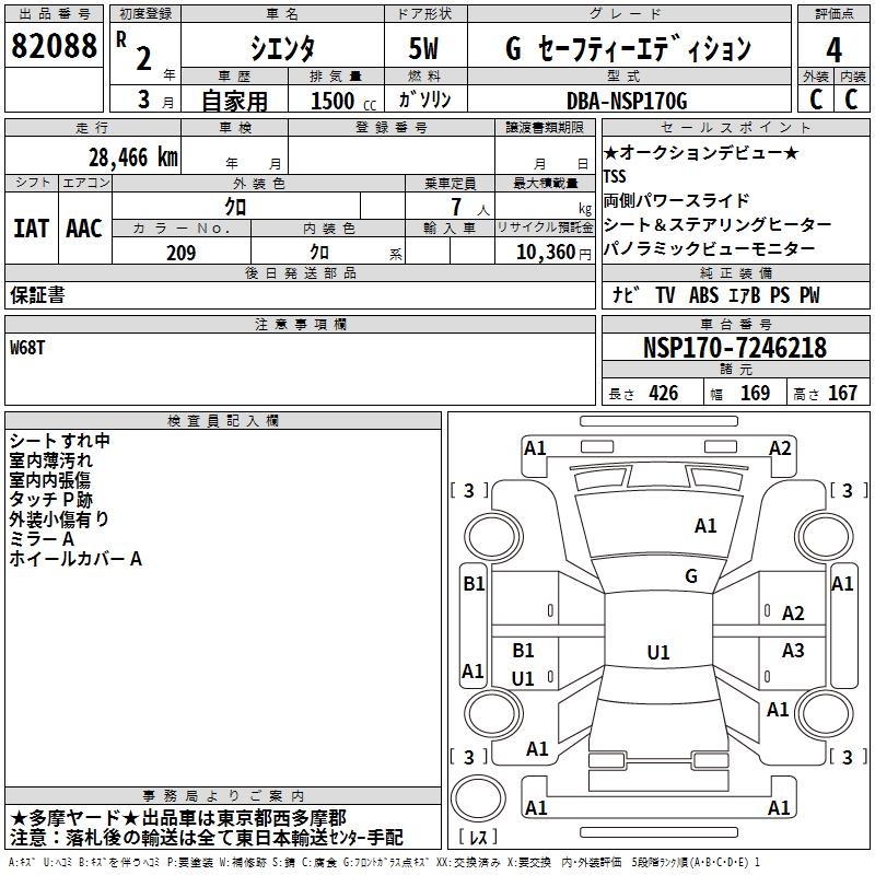 TOYOTA SIENTA G SAFETY - EDITION - лот 82088