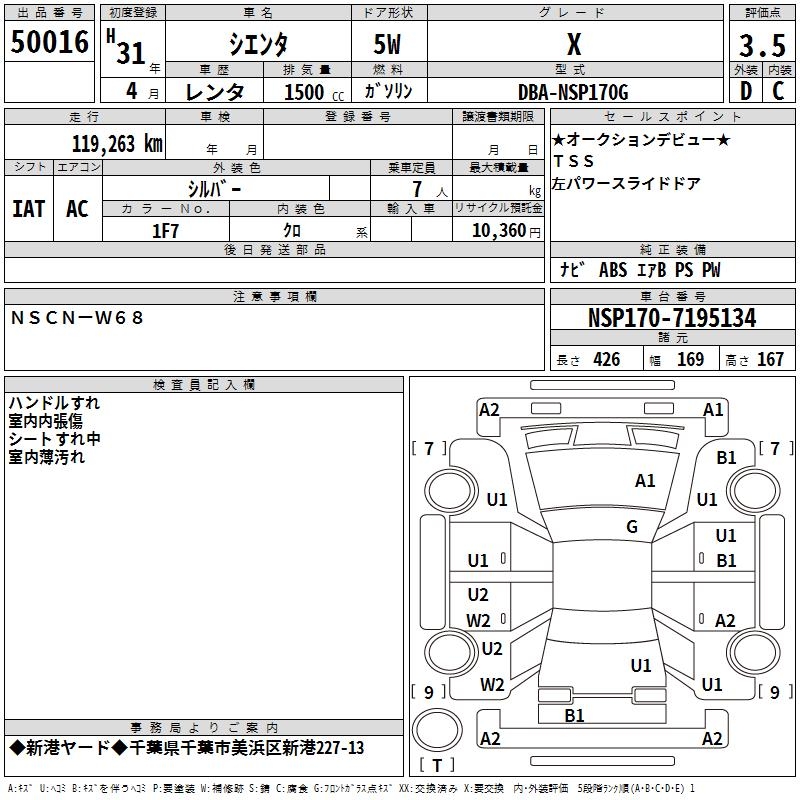 TOYOTA SIENTA X - лот 50016