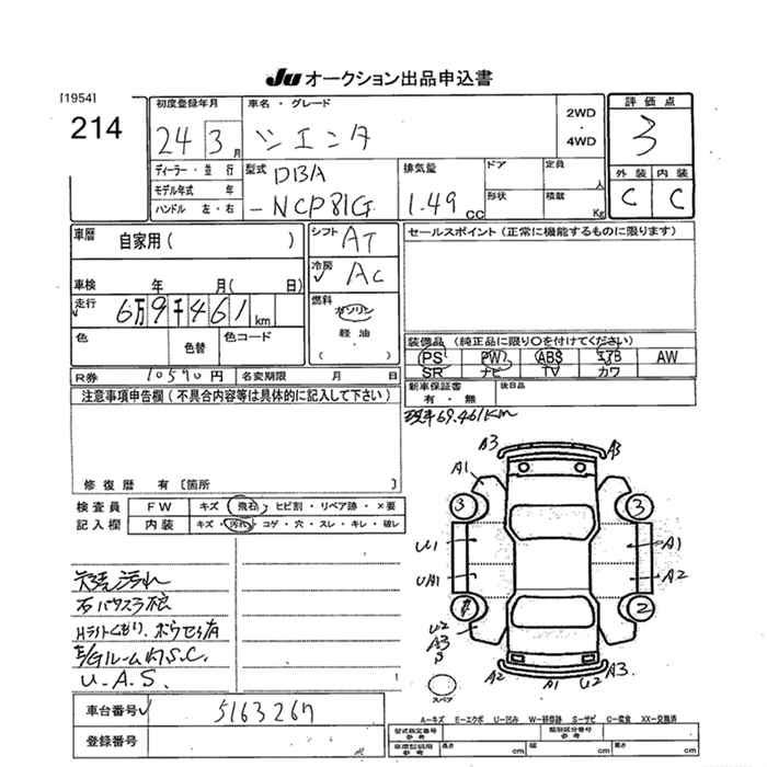 TOYOTA SIENTA - лот 214