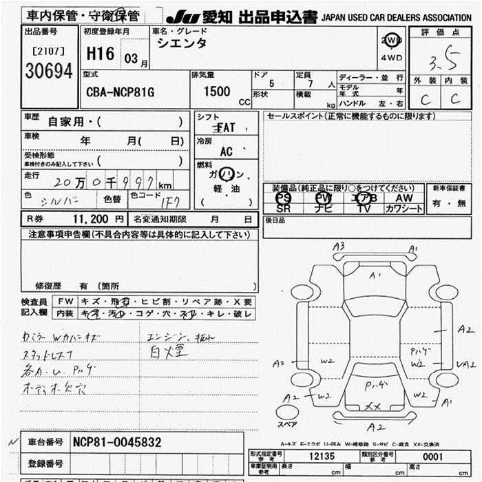 TOYOTA SIENTA - лот 30694